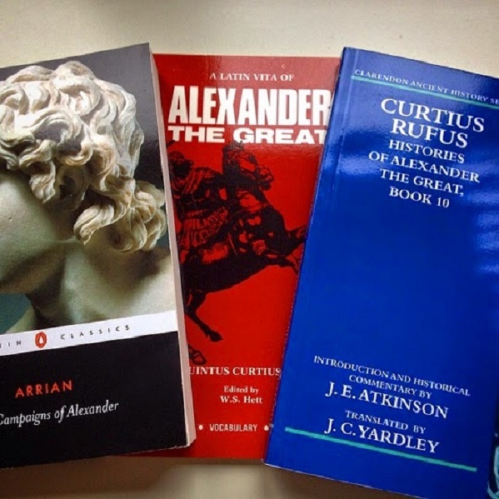 Kuva nuoresta, voittamattomasta sotapäälliköstä, joka kuoli kunniansa huipulla, luonnollisesti innoitti kirjoittajia, jotka kertoivat hänen tarinaansa ja loivat myyttejä. Jopa Plutarkhos, joka omisti Aleksanterille osan Rinnakkaiselämänkerroistaan ( Kuuluisien Miesten Elämäkertoja ), huolimatta epäilevästä asenteestaan kaikkeen joka vaikutti taikauskolta tai ihmeeltä, jätti meille lopulta muotokuvan yli-inhimillisestä persoonasta, joka lapsuudestaan saakka paljasti merkkejä suuruudestaan. Koska uskottavammat selonteot, kuten Ptolemaioksen, joka perusti tekstinsä sotaretken alkuperäisiin dokumentteihin, ovat valitettavasti kadonneet, historoitsijat joutuvat nykyään luottamaan Curtius Rufuksen, Justinuksen ja ennen kaikkea Arrianoksen säilyneisiin teoksiin.