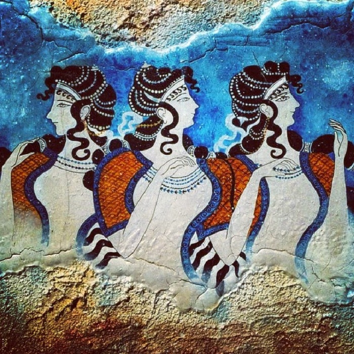 Kreetalla kaivauksia johtanut arkeologi Sir Arthur Evans totesi löytöjensä perusteella 1900-luvun alussa, että kreetalaiset palvoivat naisjumaluutta. Hänen mukaansa Kreetan taide kuvasi naisten keskenään käymiä luottamuksellisia keskusteluja. Toisaalta hän nimitti niitä juoruiluksi.